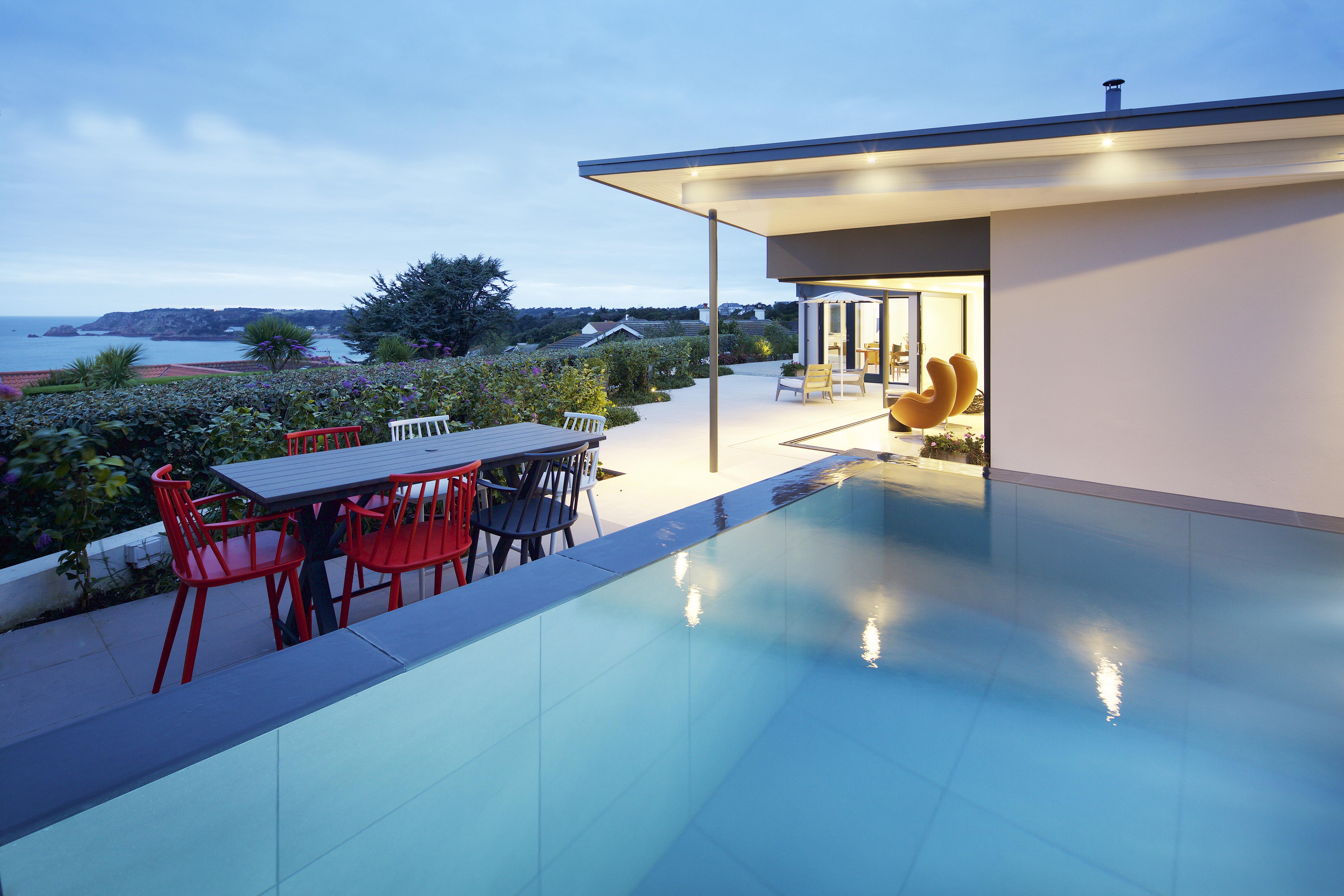The extension provides an enlarged family and dining room, contiguous with the kitchen and opens up the space to the sunniest and most sheltered part of the garden, whilst capturing and framing the spectacular views over the landscape and St Brelade’s Bay beyond.