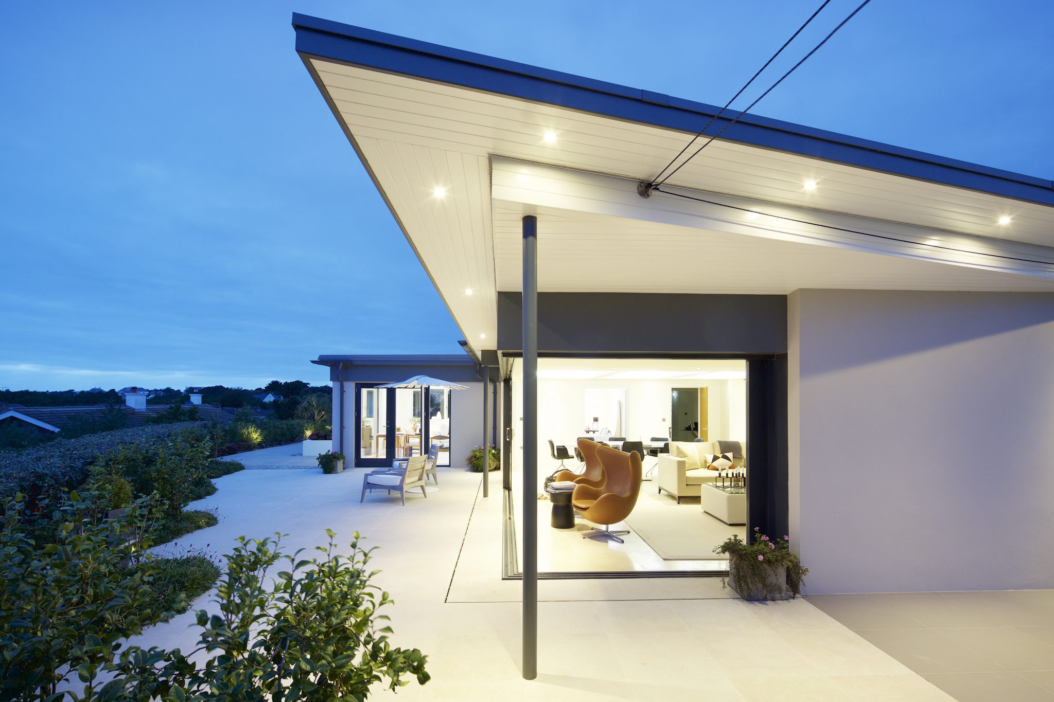 The result is a sophisticated and urbane house in a suburban setting with expanded landscape and sea views.