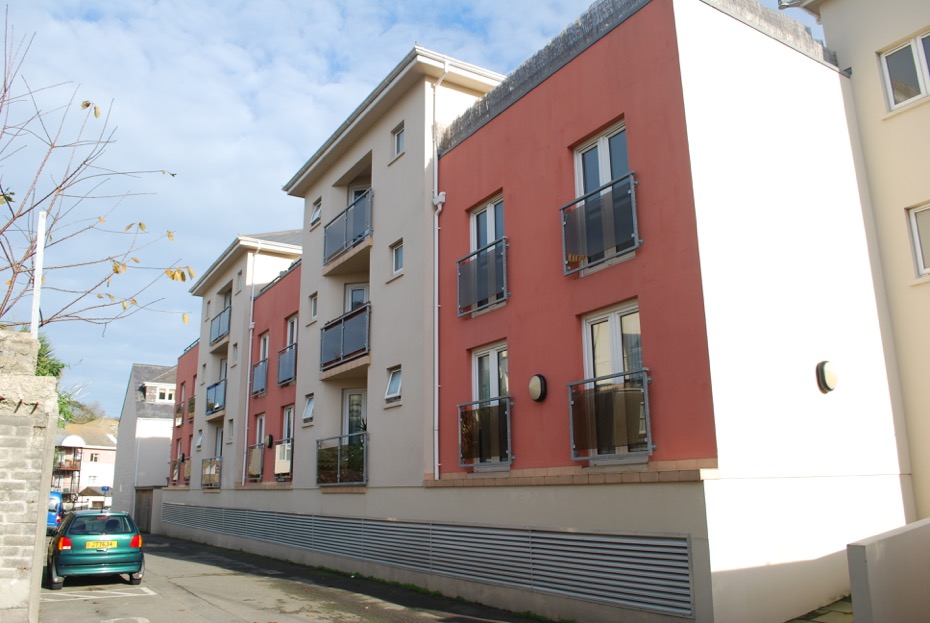 The site of a former body shop and garage proved an ideal brownfield development for social rental housing. It is an extremley high density project of one bedroom flats. Its size is mitigated by stepping back parts of the building to break up the mass. The appartments feature the ‘V’ shaped balcony allowing both bedroom and living room to share a balcony.