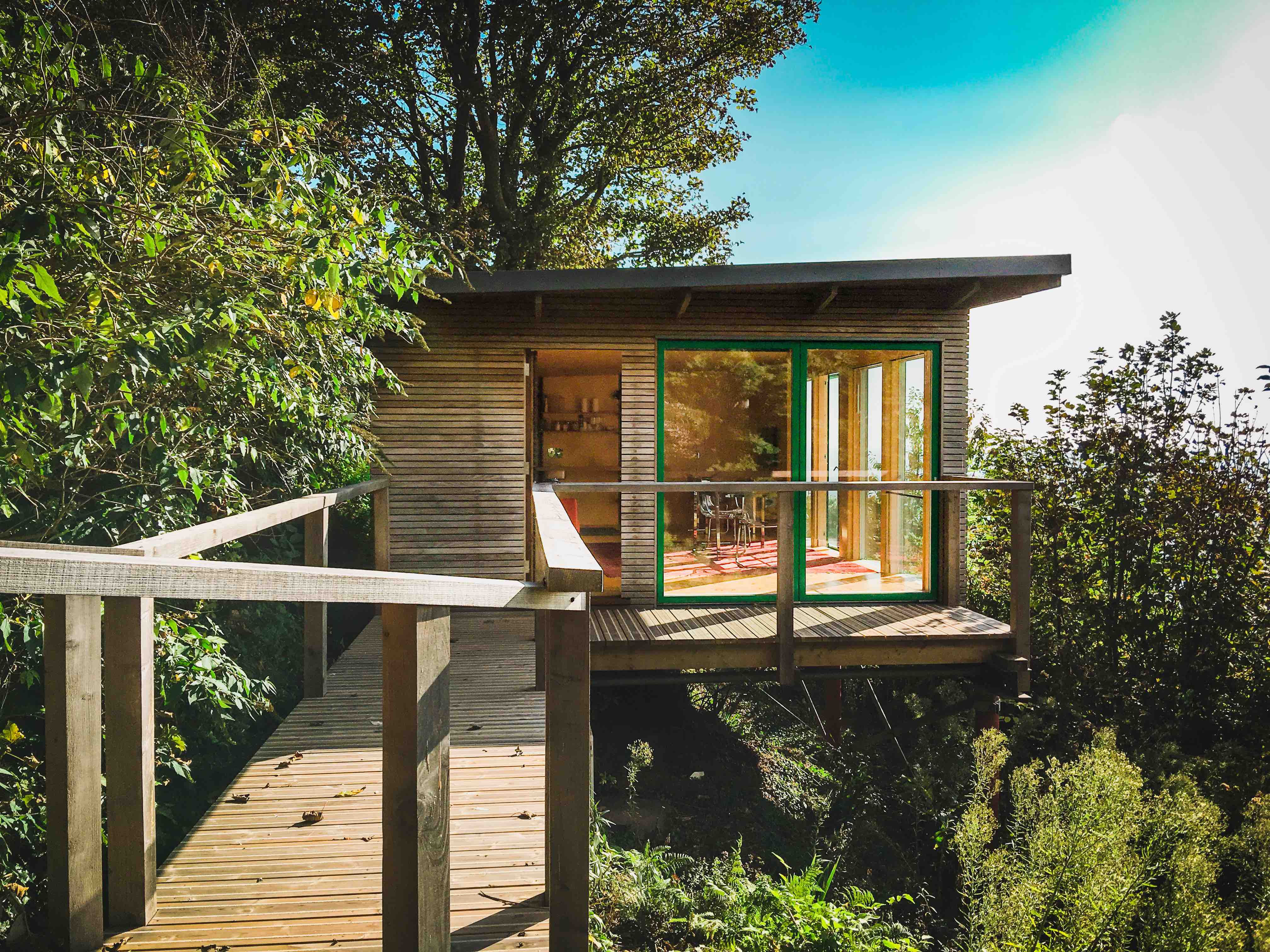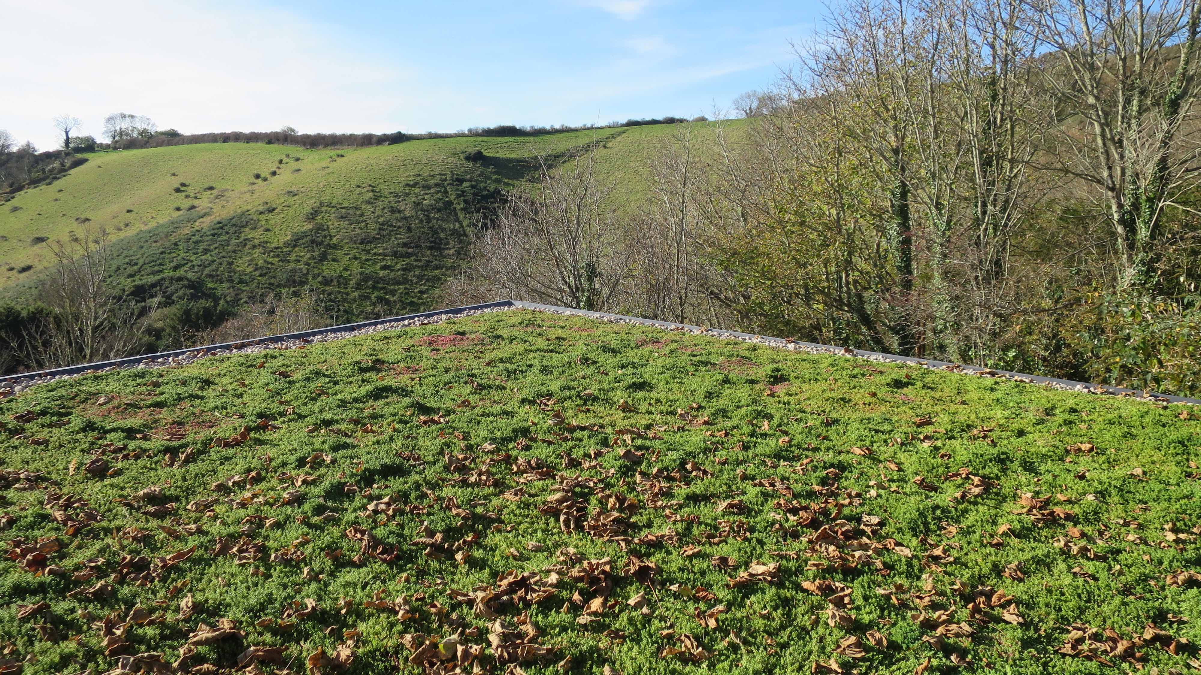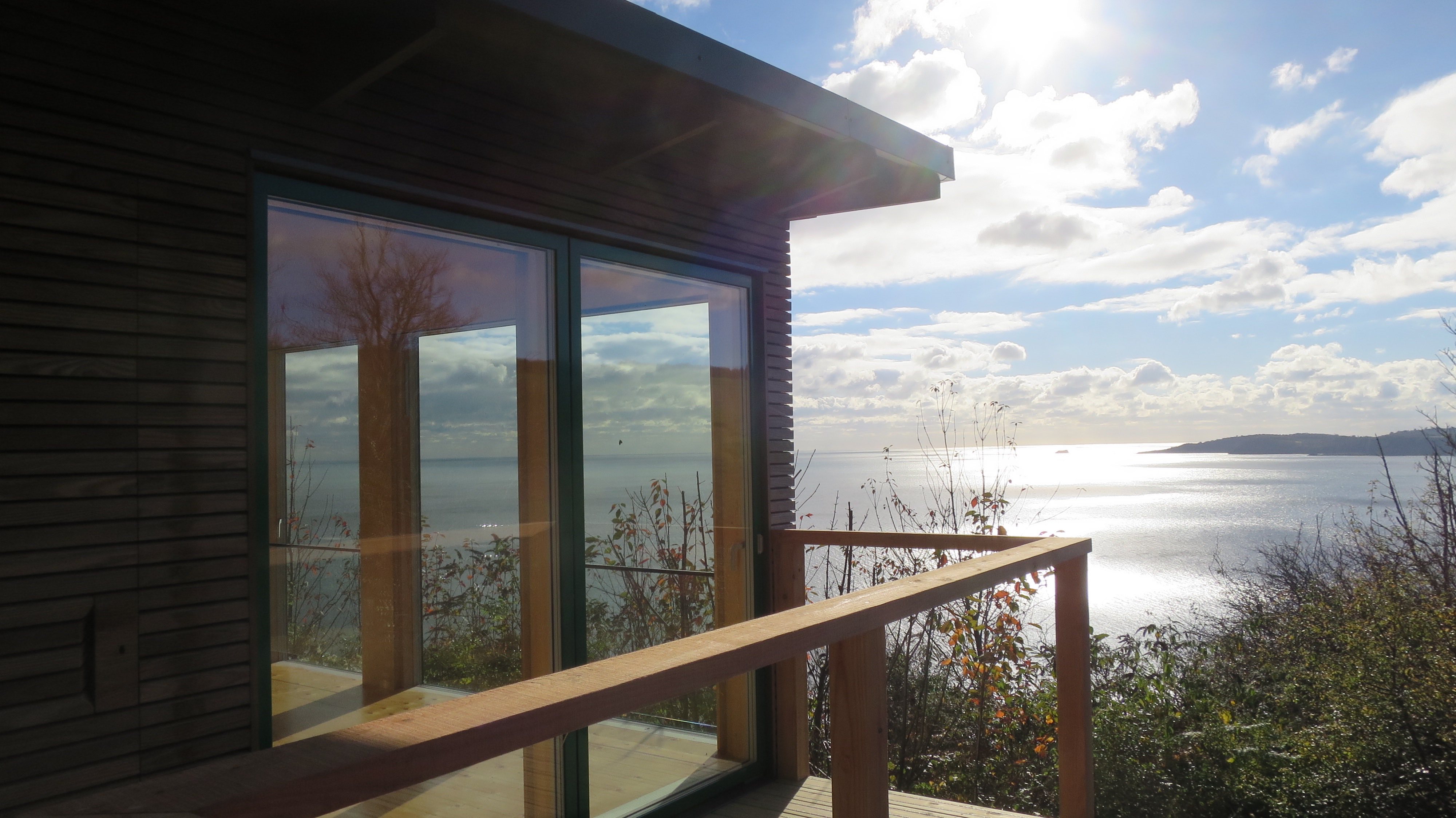 The Seaview studio completed in 2016 has taken many years to finalise. It is built with off site built timber panels conforming to Passiv Haus standards. The external rainscreen cladding is thermo ash which should not need redecorating. The roof is a green sedum roof which blends perfectly into the countryside,